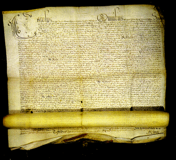 The 1636 Grant with the seal of Charles I for the Barony of Drumaghiere, Co Leitrim, Connacht, Ireland to Nicholas Preston, 6th Viscount Gormanston. Courtesy of Viscount Gormanston, the 12 th Baron of Drumaghiere. September 1998