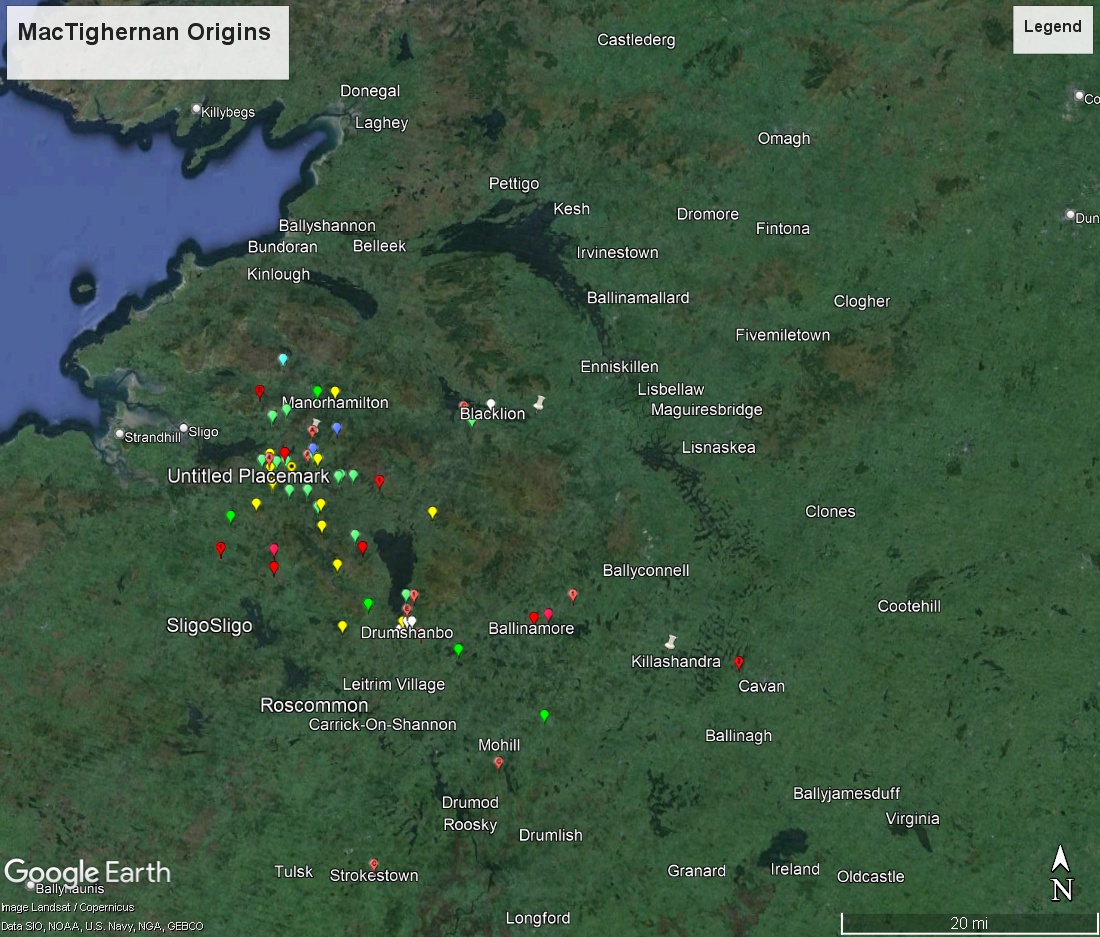 each MacTighernan townland of origin if known. With 487 MacTighernans