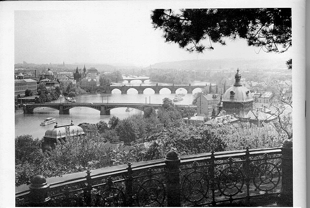 Prague: Looking south along the Vltava River. The second bridge is Charles Bridge.